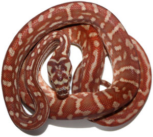 Female 66% possible Double heterozygous for T+/ Black Eye Childrens python. Feeding on pink mice. (All of my T+ Childreni stock are from the European T+ Lineage and are not related to any USA bloodline)
